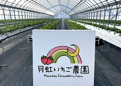 昼間は、のどかな田園風景に包まれた中でのいちご狩りを、夕暮れ時は、見ると願いが叶うと言われる月虹の光の下で、いちご狩りを月虹いちご農園で。
